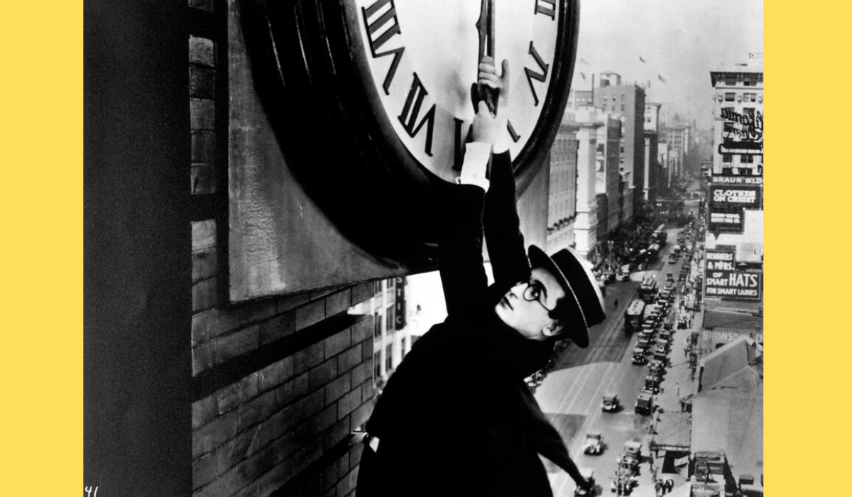 Hans ikoniske stunt hvor henger i en klokke i Sikkerhet først! er et av de mest varige bildene i filmhistorien.